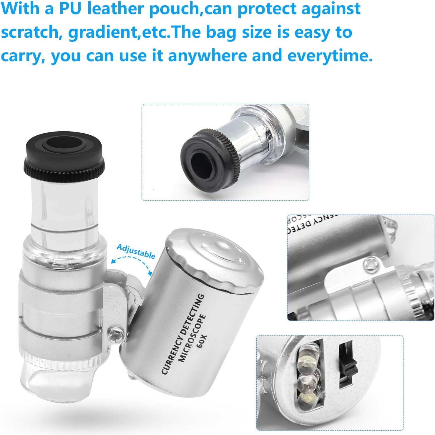 De 60x Mini-LED Microscoop is een compacte en draagbare handmicroscoop die ideaal is voor het inspecteren van kleine objecten zoals munten, planten, insecten en textiel. Met een vergroting van 60x en heldere LED-verlichting biedt deze microscoop duidelijke en gedetailleerde beelden, zelfs bij weinig licht.