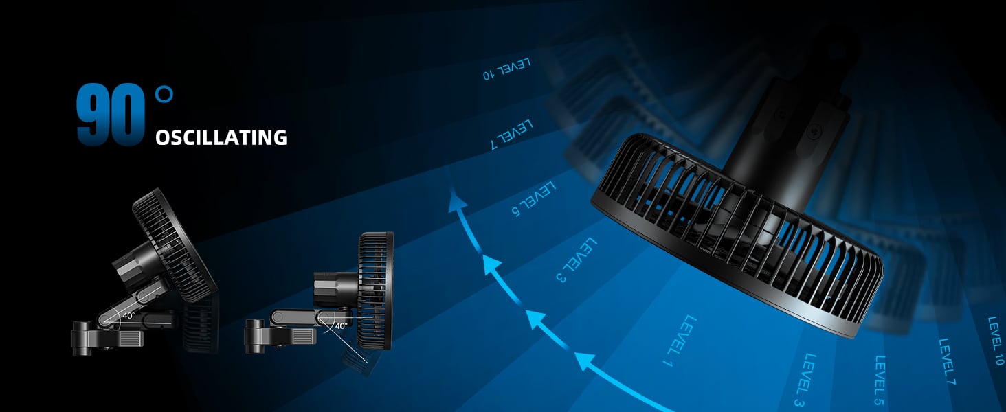 Plaats de ventilator strategisch in je kweektent om lucht te circuleren boven en onder het bladerdak. De robuuste clip past op stangen van 16 tot 25 mm en blijft stevig op zijn plaats, zelfs bij intensieve oscillatie. Richt de ventilator naar de wanden van de kweektent voor een zachte, diffuse luchtstroom die planten niet beschadigt. Met de Spider Farmer app kun je de ventilatorsnelheid, oscillatiehoek en werktijden aanpassen voor een geautomatiseerde en efficiënte kweekervaring.