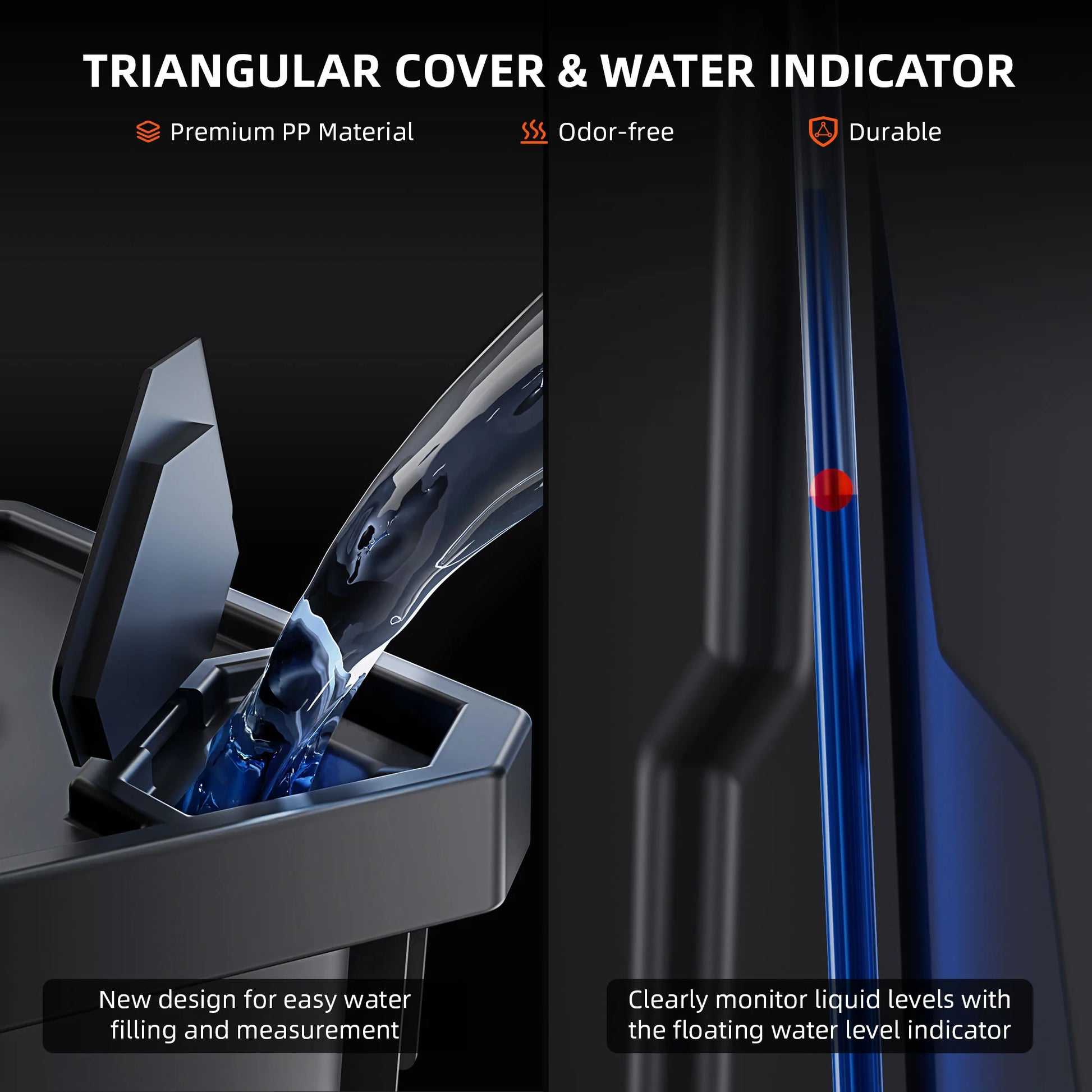 Innovatief Driehoekig Dekselontwerp: Het unieke driehoekige deksel maakt het eenvoudig om water toe te voegen en vloeistofparameters te meten zonder het hele systeem te verstoren.